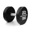 Hantel ata Aerobic PU Hantel är en helgjuten hantel klädd med slitstarkt PU-material, som passar lika bra i gruppträningsrummet som på fria viktavdelningen. ata gör präglingen direkt i formen så att den förblir lika stark. PU gör att hanteln får ett starkt skydd och tål svett utan att ta skada. Dessutom har ata gjort en platt botten så att de kan användas till armhävningar och andra övningar som kräver stabilt stöd. Tack vare materialet får golvet en skonsammare hantel, utan att kompromissa med kvaliteten på hanteln.