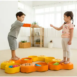 Balansesettet Beleduc Spin & Balance består av plattor med roterande skivor som tränar balans och stärker musklerna i kärnområdet. Knopparna på ytan ger en behaglig känsla när barnen balanserar barfota. Tack vare möjligheten att integrera plattorna i olika lekar och spel erbjuder de en mängd träningsmöjligheter och öppnar dörren för roliga tävlingar.