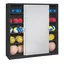 Förvaringsskåp typ 4 a. med täta skjutdörrar. Skåpet har parketthyllor med kant så att bollarna inte ramlar ut. Hyllorna kan enkelt flyttas och anpassas till höjden på den utrustning som ska förvaras. Utrustningsskåpet är utmärkt för gym, sporthallar och andra offentliga platser där det finns behov av att låsa in utrustningen. Robust konstruktion med skjutdörrar i metall och cylinderlås med 2 nycklar. Dörrarna har en rund perforering på 3,5 mm som förhindrar fingerskador.