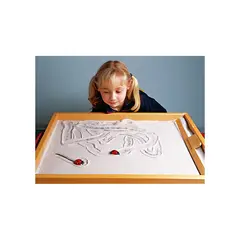 Det skapas vackra mönster och bilder, som när som helst kan tas bort med sandskrapan. 65x50x5 cm, av massivt bokträ, med botten tillverkat av härdat säkerhetsglas 1 sandskrapa för utjämning, 2 sandkrattor för att göra mönster, 1 kg fin kvartsand. Sandbaljan för förskola eller terapi erbjuder Många värdefulla alternativ för finmotoriska färdigheter eller kreativ sandlek och mer.