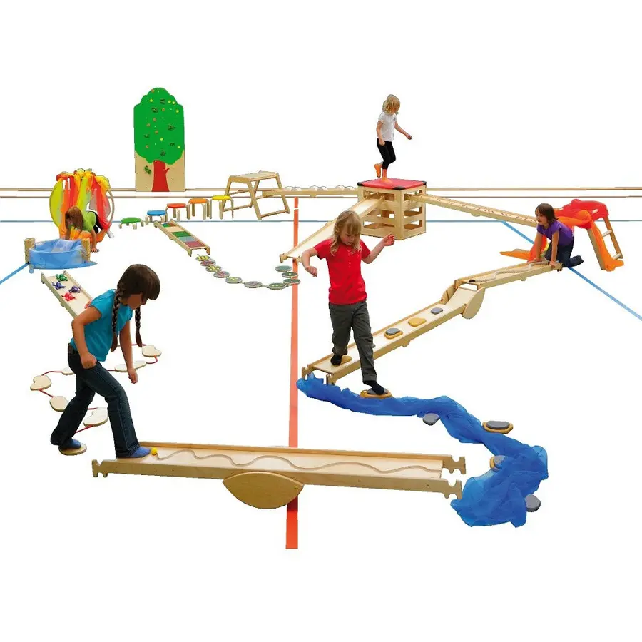 Balansbanor som gör balansträning rolig! Via de olika ytorna, de små och stora hindren och de fasta och rörliga komponenterna, får barnen balansera i en ny dimension. De är väl lämpade för att gå barfota på.