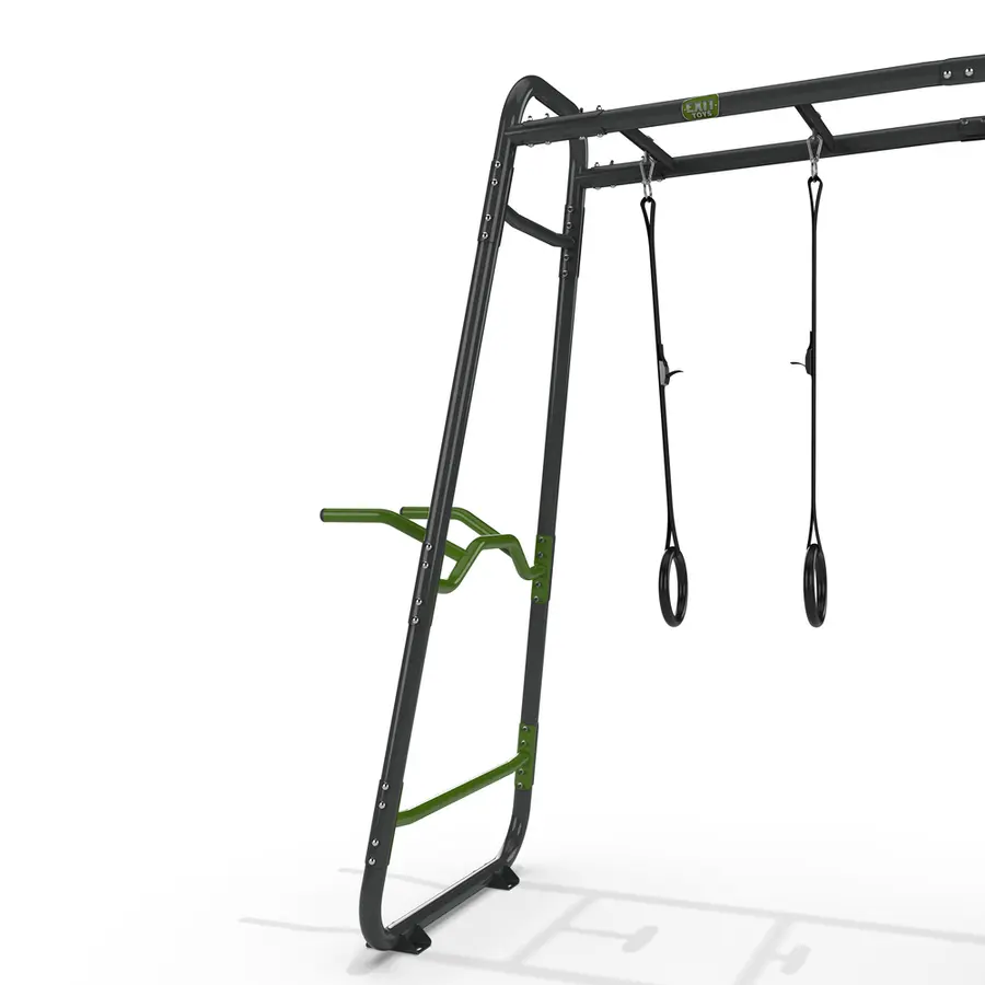 EXIT GetSet monkeybar MB220 är en utomhuslek- och träningställning för trädgården. Exit har tagit tillfället i akt genom att låta lekställningen växa med barnet, så att gungor och gymnastikringar kan ersättas med boxningssäckar och dips mm för tonåringen och de vuxna. Exit är kvalitet. Ramen är extremt stabil, rostfri och du kommer inte att uppleva störande knarrande ljud från metall som skaver mot metall. Lek- och träningsapparaten kommer med ett förankringsset och det är viktigt att gjuta det så att stativet förblir stabilt i alla väder och när flera tränar tillsammans. Med detta Power Rack är du garanterad många års träningsglädje i trädgården.