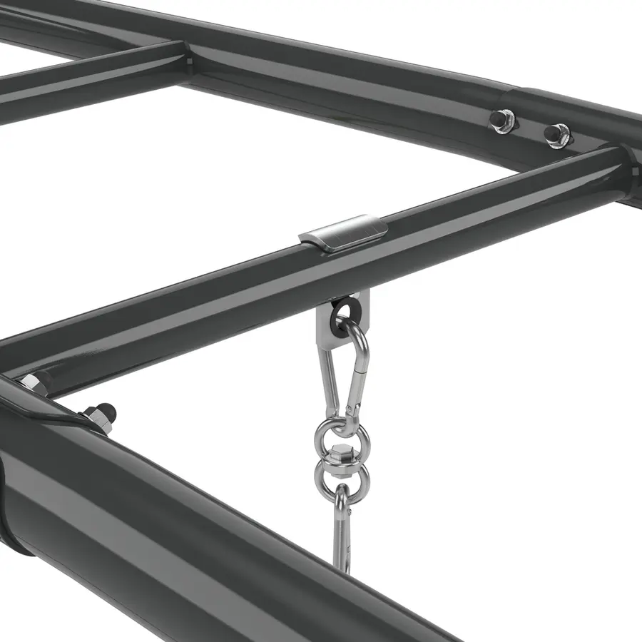 I EXIT GetSet Powerstation PS510 får du stålramen med 5 krokar för upphängning och fästsats, Dips, Push-up, Boxningsväska, Battle Rope-ringar ( Battle rope ingår ej ) Chin ups, Träningsbänk, Klätterrep, Klättervägg och Skivstång stöd (stång ingår inte)