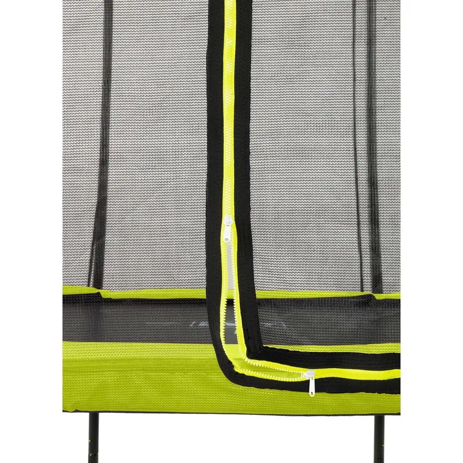EXIT Silhouette studsmatta är en modern och stilren, rund studsmatta med skyddsnät. EXIT Silhouette studsmatta har klädsel i varierande färger så att du kan välja den färg som passar i din trädgård. Detta är en kvalitetsstudsmatta till ett bra pris! Studsmattan levereras med ett skyddsnät som ska monteras tätt på stolparna. Skyddsnätet är utformat så att det inte finns någon risk att någon trasslar in sig i nätet och det har en grön dragkedja så att du direkt kan se om det är ordentligt stängt. Den högkvalitativa stoppningen täcker de galvaniserade fjädrarna och har ett specialdesignat fotskyddssystem som förhindrar att fötterna fastnar i fjädrarna. De solida fjädrarna ger solid hoppkraft. Ramen på Sihouette studsmatta är galvaniserad och pulverlackerad för att den ska ha lång livslängd och inte rosta.