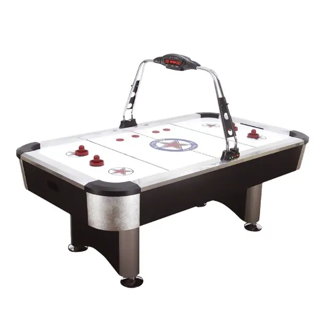 Den stöttåliga MDF-ytan med reptålig beläggning har en sarg i aluminiumkant för bästa returspel. En högpresterande fläkt ger luftflöde genom hålen i plattan och skapar en luftdyna för pucken.