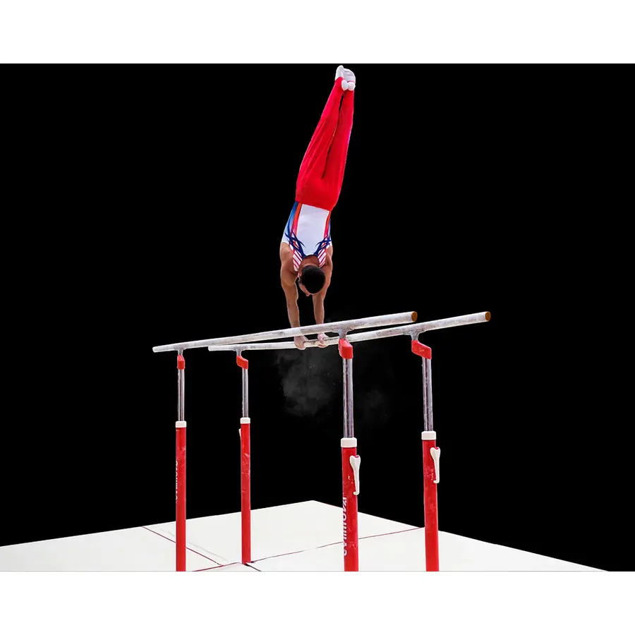 Det här är den allra nyaste herrbarren med fiberholmar. Holmarna gör barren mer motståndskraftig än tidigare och har en längre hållbarhet. Fibern i holmarna gör att du inte behöver förbereda dig på samma sätt som tidigare. Barren har testats och godkänts av de största gymnastikklubbarna och var FIG-godkänd inför världsmästerskapen 2022. Dessutom är den ekologisk och minskar användningen av kalcium/magnesium.