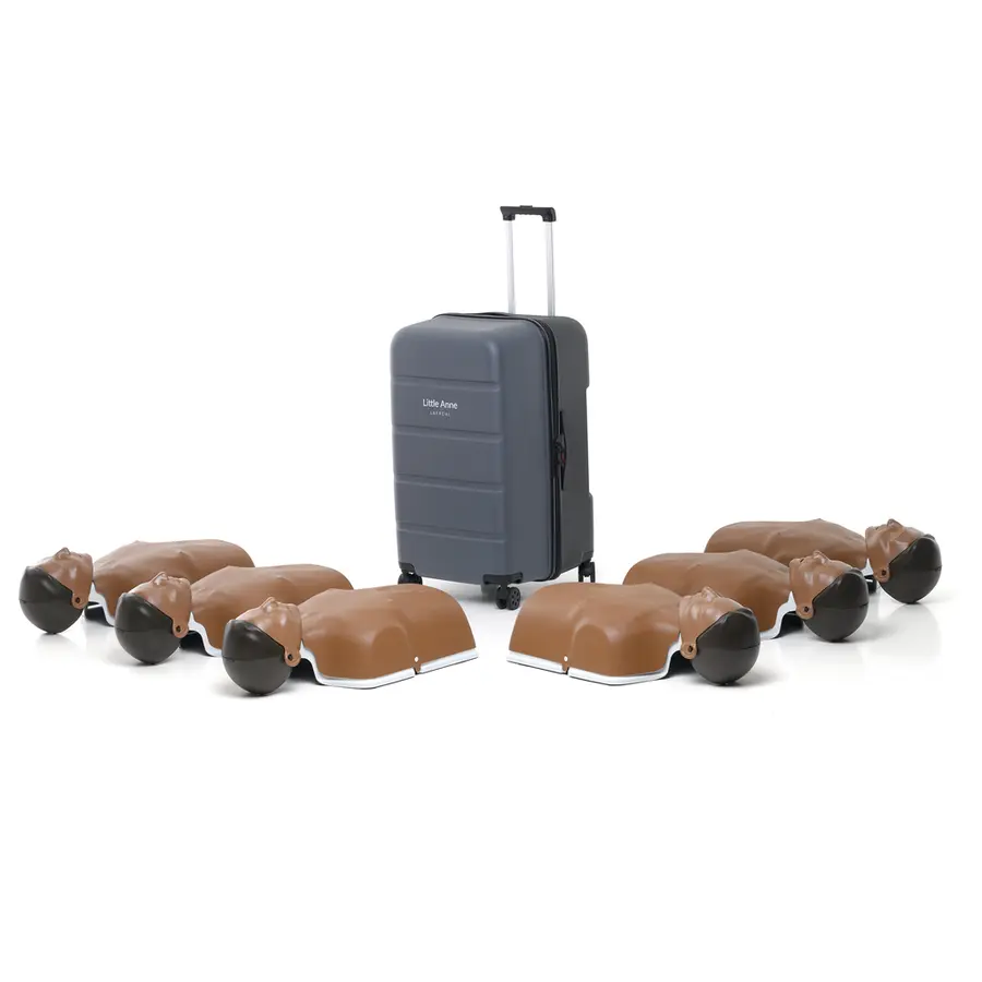 Little Anne dark från Lærdal Medical är en vuxen HLR-båldocka som är lätt att använda. Detta är en uppsättning av 6 träningsdockor. Dockorna går att stapla så de är mycket lättare att transportera runt i en praktisk vagnlåda. I denna nya version används återvunnet material så själva produktionsprocessen är mycket mer hållbar. Den tidskrävande uppgiften att byta lungor efter varje timme är nu ett minne blott. Nu är varje Little Anne utrustad med ett hygieniskt, utbytbart filter. Klicka bara på den på plats och spara tid på installationen före varje lektion.