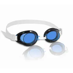 Simglasögonen har justerbar näsbrygga och kan anpassas för barn och vuxna. Linser tillverkade av polykarbonat. Neoprenlister runt ögonen.