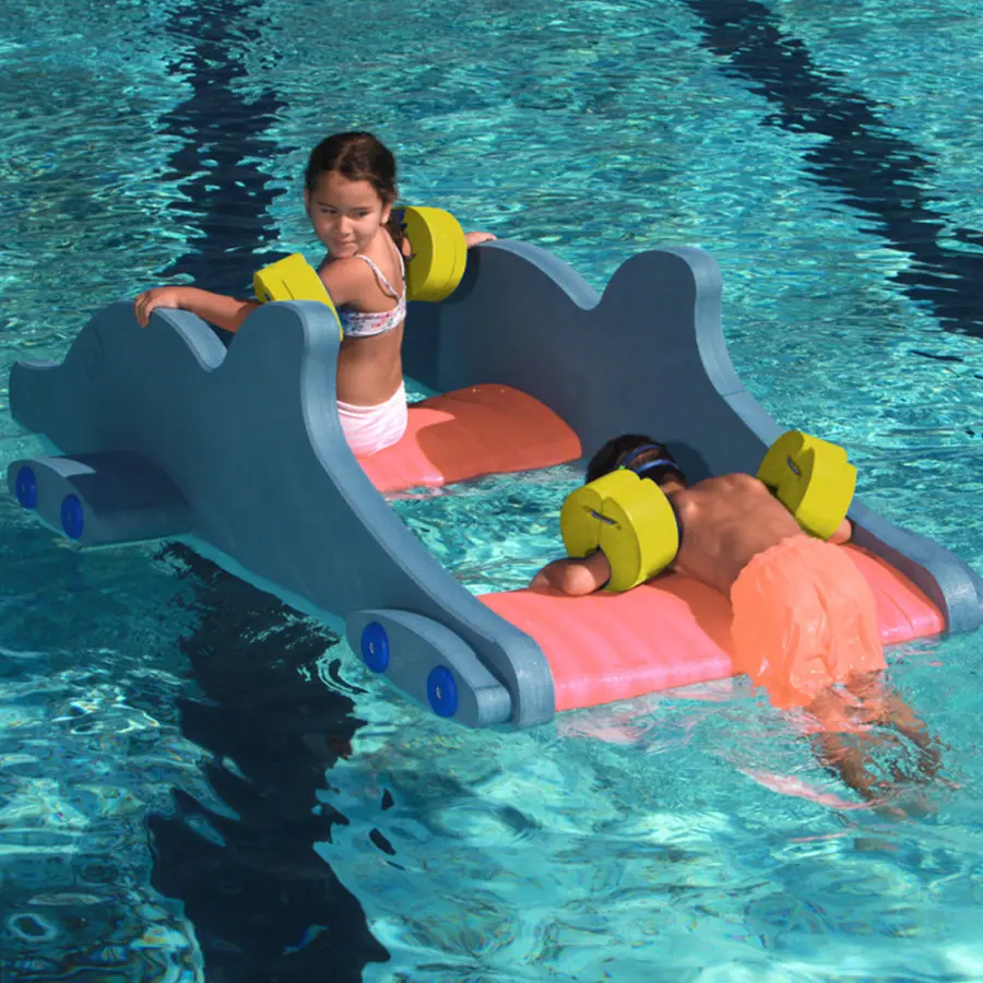 Malmsten producerar flytande leksaker och flottar som tål tuff behandling och förvandlar poolen till ett badparadis för stora och små barn.