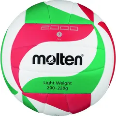 Volleyboll Molten V5M 2000-L har det officiella namnet, det är lättare.En lämplig volleyboll för skola samt nybörjare . Volleybollen har ett kraftigt lager av mjukt syntetiskt läder som är slitstarkt. Bollen är ca 15% lättare i vanlig volleyboll, vilket gör det enklare att lära sig slagtekniker med denna boll.