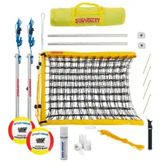 • 1 SUNVOLLEY® beachvolleybollset med 2 aluminiumstolpar ø40 mm, 4 polypropylenrep och jordförankring