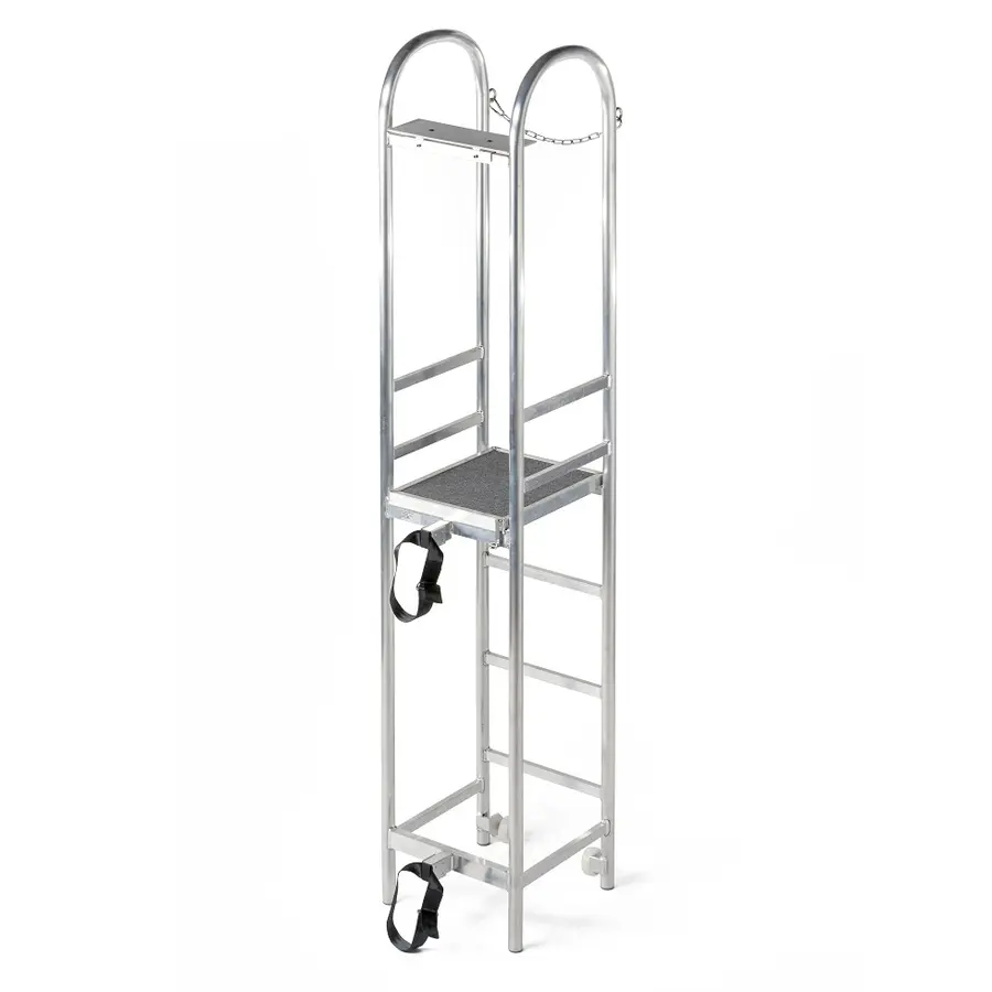 Sport-Thiemes domarpodie är gjord av aluminium och är helsvetsad. Konstruktionen är därför mycket robust och stabil. Tack vare det stora plattformen och de 2 säkerhetsband med vilka plattformen är stadigt ansluten till stolpen, kan du stå säkert hela tiden. Gummifötter under plattformen skyddar även ditt hallgolv. En skrivtavla för dina dokument ingår i leveransen.