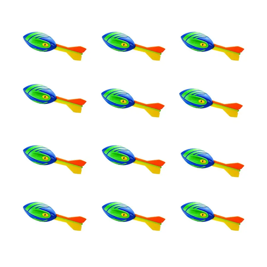 12 st kastraketer. Träna kaströrelsen med denna väldigt roliga träningsprodukt. Du kastar den och den flyger i luften med ett visslande ljud. Den går mycket bra igenom luften tack vare sin aerodynamiska utformning och de mjuka fenorna. Denna briljanta skapelse och flygande bollmissil är en enastående produkt. Den uppmanar till kast, fångst och rörelse! Mycket bra hållbarhet.