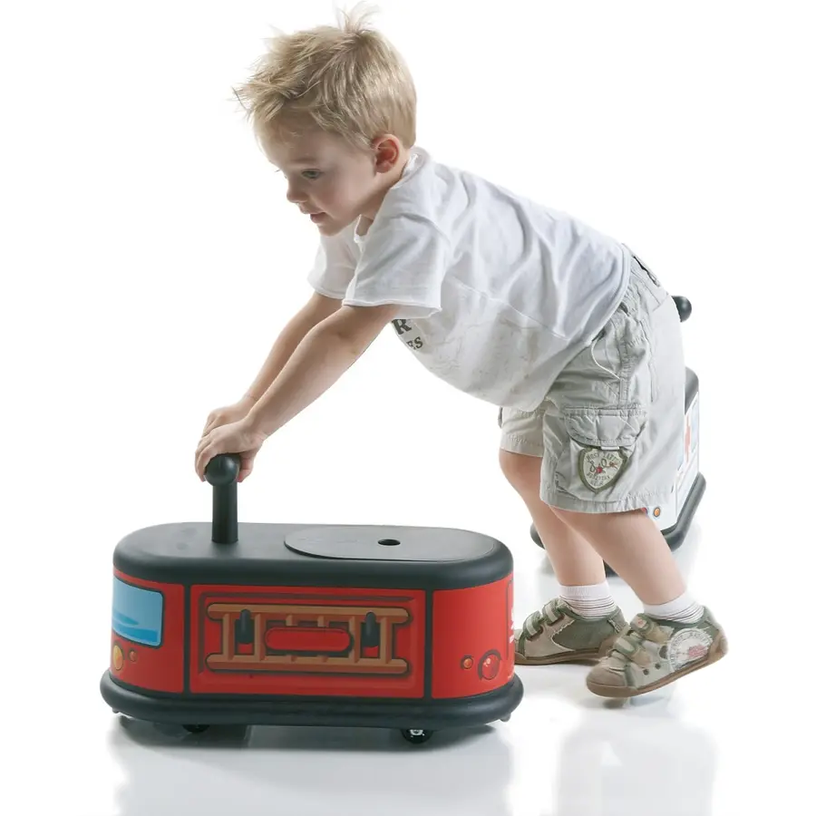 Italtrike "Rutscher-Flitzer" sparkbil Brandbil: Tyst, manövrerbar, praktisk, säker och snygg. Sparkbilarna med de fantastiska färgglada designerna är speciellt designade för inomhusbruk - oavsett om det är i förskolan eller hemma. De nötningsbeständiga, icke-fläckande solida gummirullarna glider nästan helt tyst över laminat, kakel, parkett, matta eller och en allround stötfångare skyddar möbler och väggar. Snyggt staplade inuti varandra hittar sparkbilarna sin plats även i det minsta barnrummet efter att ha lekt.