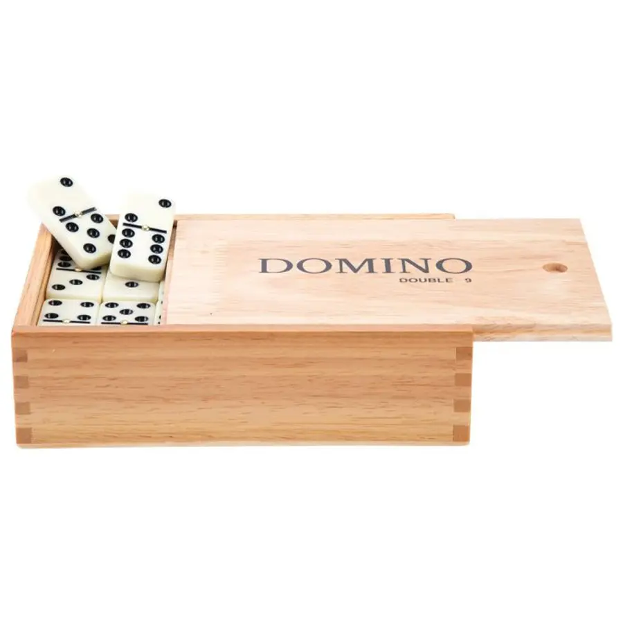 Detta dominospel kommer i en vacker trälåda med skjutlock. Brickorna är gjorda av ureaplast och har en storlek på 50 x 25 x 10 mm. De går från dubbel 1 till dubbel 9. De extra breda brickorna är av hög kvalitet och mycket hållbara.