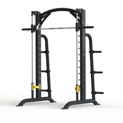 Smith-maskin med stativ för förvaring av olympiska viktskivor och motvikt.