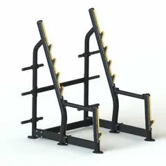 Ett smart och smidigt knäböjsställ med fasta stångupphängningar i olika höjder och 6 upphängningar för viktskivor. Kan placeras mot vägg eller fritt på golvet. Kan användas för knäböj, bänkpress mm.