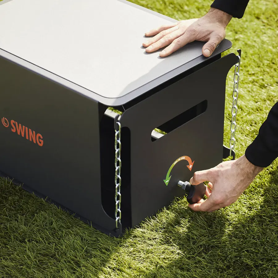 LITE SWING ger full rörelsefrihet och obegränsade träningsmöjligheter, oavsett vilken sport du spelar. SWING är en plattform där du kommer att träna på ett ben samtidigt som du balanserar på en instabil yta, skapad av horisontella svängningar. Denna plattform använder ett speciellt mekaniskt system för att skapa svängningar. Den mångsidiga designen och enkla justeringssystemet gör SWING lämplig för alla typer av träning och idrottare. SWING består av två ytor sammankopplade med hjälp av speciella kedjor, som tillåter svängningar av en yta att svänga över den andra. Med den unika LITE-mekanismen kan du enkelt justera plattformens oscillation genom att vrida på en ratt, så att du kan anpassa svårighetsgraden. Ju mer komplexa rörelserna är på en koordinativ nivå, desto större svängning på plattformen. SWING är särskilt effektivt för att förbättra balansen genom att begränsa rörelserna till kroppens tyngdpunkt i situationer som kräver stabilitet.