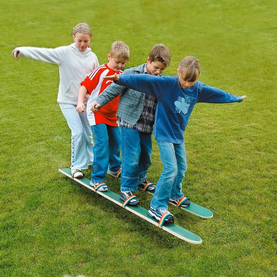 Med Pedalo teambulidingsskida"hand-foot strap" tränar du samarbete, koordination och balans. Att röra sig tillsammans på de långa grässkidorna kräver hänsyn och koordination. Detta är förknippat med en hög skrattfaktor. Oavsett om det är i förskolan, i skolan eller på företagsevent kräver skidorna samarbete tillsammans. I en teambuildingaktivitet erbjuder skidorna en spännande förändring som en laguppgift. I terapeutiska samarbeten krävs hänsyn till grupppartnern och tillit. Teambuildingskidorna borde inte saknas på någon skola, eventföretag eller i någon förening.