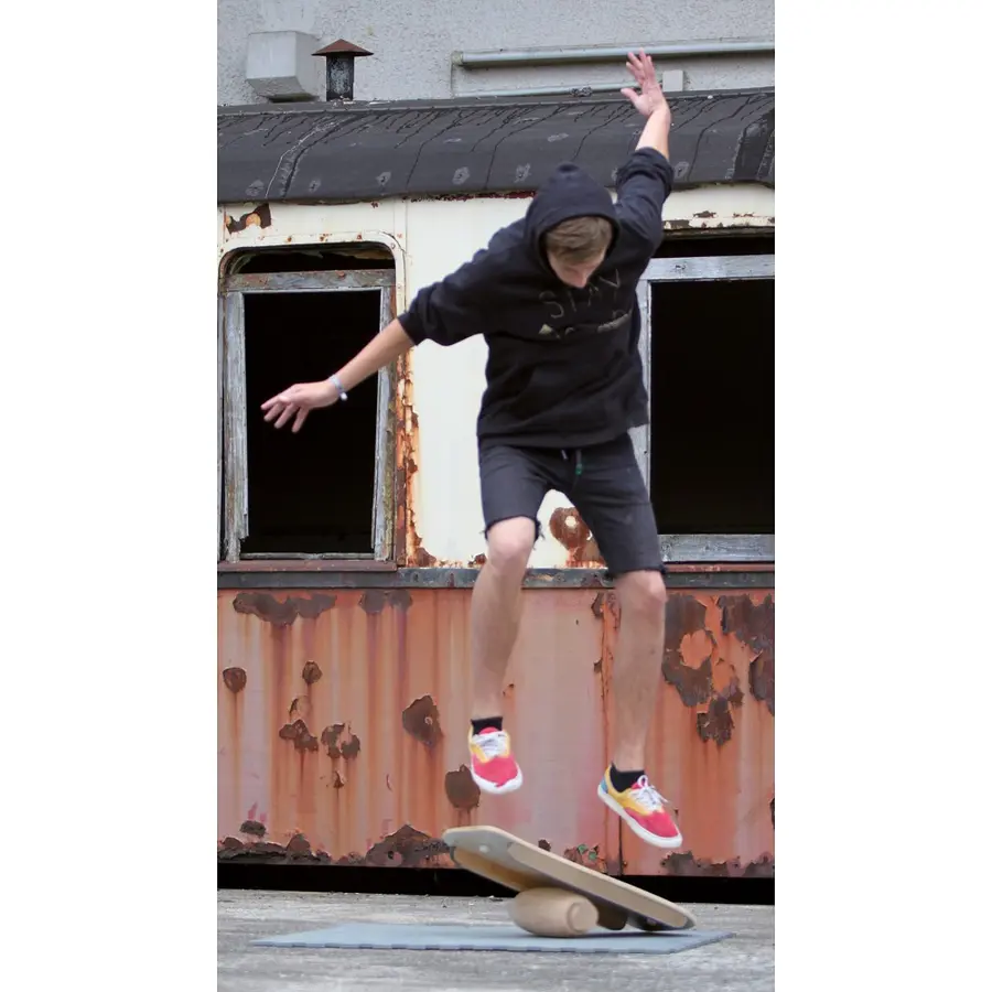 Pedalo "Surf" balansbräda är det idealiska träningshjälpmedlet för surfare, wakeboardåkare, snowboardåkare, skateboardåkare och inliners och alla som älskar sportutmaningar. Skivan är försedd med en halkskyddsyta, vilket säkerställer ett säkert fäste även vid snabba moment. 2 löpare är monterade på undersidan av brädet, mellan vilka övervridningsrullen löper. Denna kombination säkerställer maximal kontroll, säkerhet och maximal rörelsefrihet. Det finns gummibuffertar i ändarna som hindrar skivan från att glida över rullen.