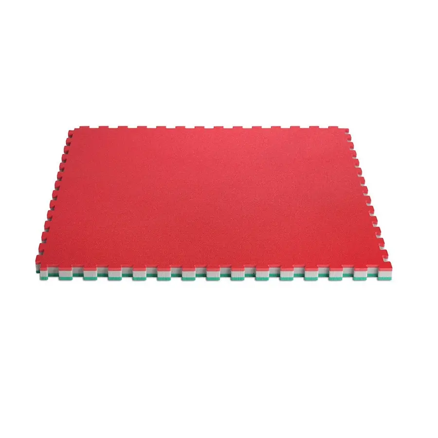 Mattan har en röd sida och en grön sida, och kan användas på båda sidor. Taggarna gör det enkelt att montera samma flera mattor, samt sätta på kanter för en rak finish. På grund av sin innovativa konstruktion har Trocellen judomatta Tatami en särskilt hög elasticitet och en unik stötdämpning. Detta minskar risken för olyckor och skador avsevärt.