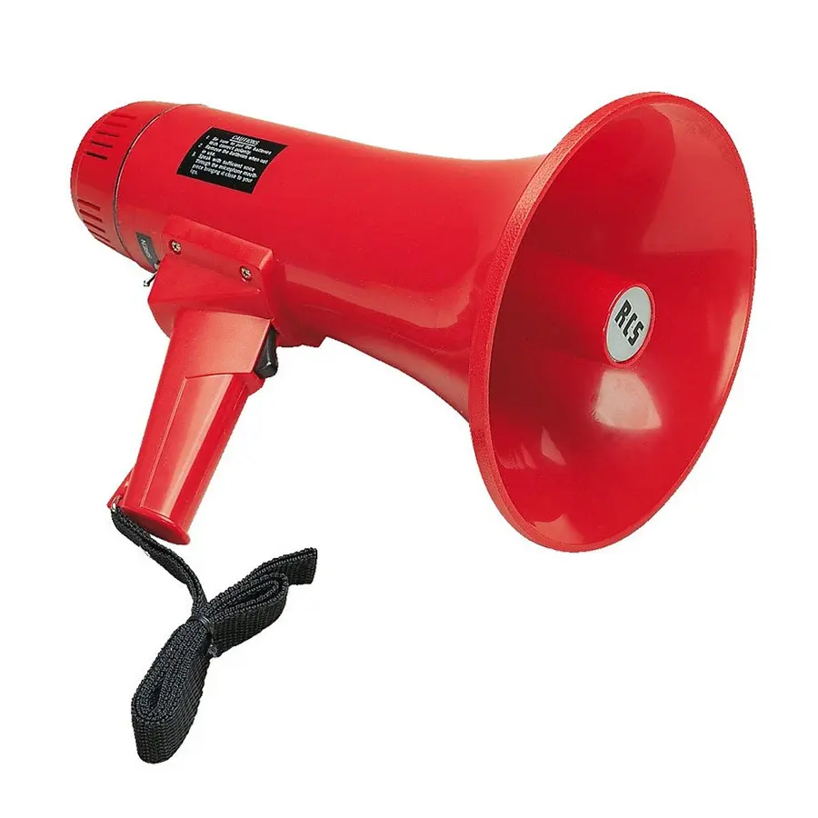 Högkvalitativ handhållen megafon med räckvidd i det fria på upp till 500 m, ett oumbärligt verktyg för att organisera evenemang och tävlingar där du behöver höras till många över en stor yta.. Megafonen levereras utan batterier.