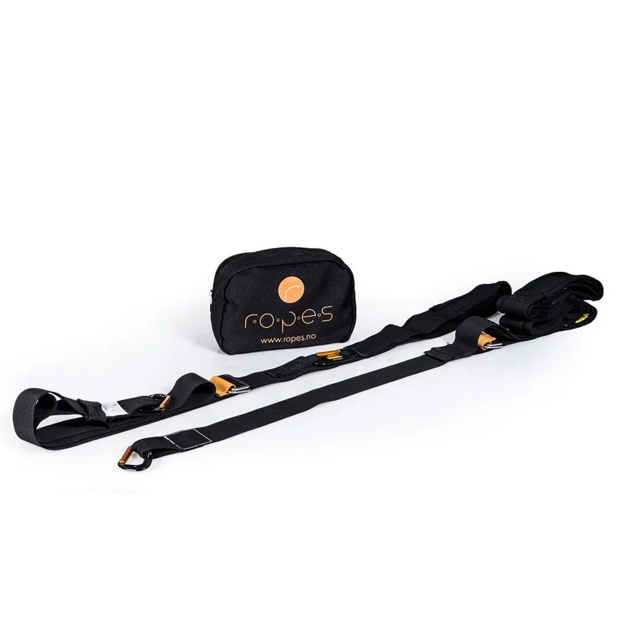 R.O.P.E.S Black Line är ett TRX band för träning med kroppsegen vikt i hemmet, på gymmet, i sommarstugan eller var som helst där det finns möjlighet att sätta upp banden. Träningsbanden är mycket hållbara och tål den allra tuffaste belastningen. De två byglarna / öglorna i varje ända på banden gör att vikten fördelas och att öglorna inte skär in i tex knän, vrister eller handleder vid belastning. Detta är mycket viktigt då du vill kunna fokusera på träningen och inte behöva justera grepp och läge på öglorna under repetitionerna. Trängsbandens instabilitet vid rörelse främjar många småmuskler då du hela tiden behöver balansera och kompensera för instabiliteten under tiden du tränar.