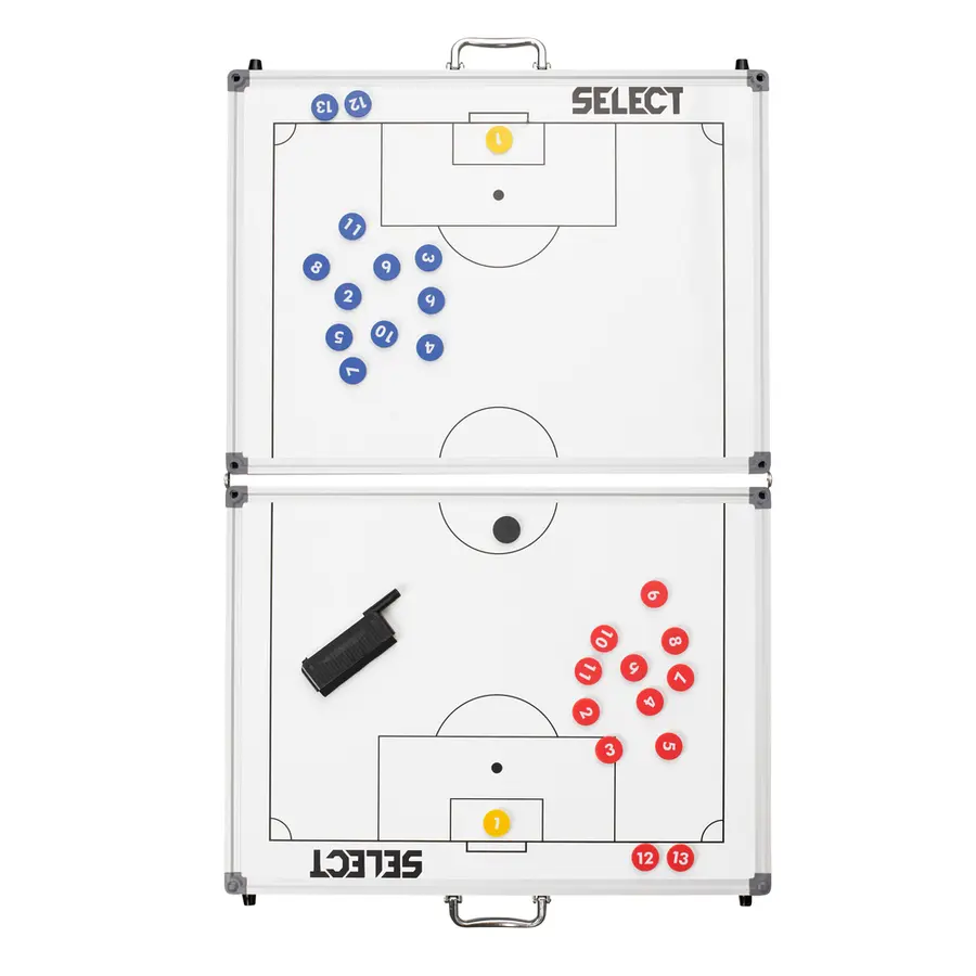 Taktiktavla för fotboll som tar liten plats och kan fällas ihop för att enkelt kunna tas med.