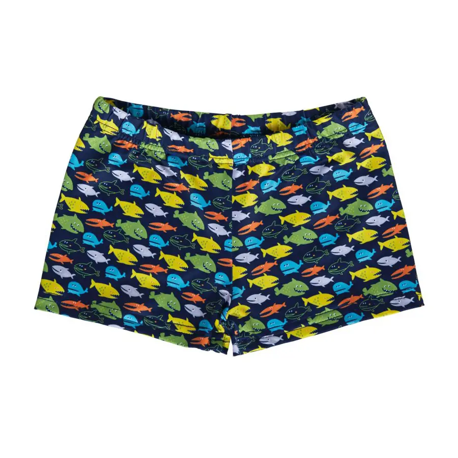 Tonton Trunk badbyxa från Slipstop har ett tätt och färgglatt mönster med fiskar och hajar i olika former, och passar bra för barn som gillar livliga detaljer och vattenlek. Den elastiska passformen och det snabbtorkande tyget gör den bekväm att använda hela dagen – både i vattnet och på land.