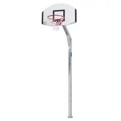 Stationär basketanläggning i aluminium, för skolgårdar och lekplatser. Med stabil måltavla, korg och nät. Max överhäng 0,65 m, korghöjd 3,05 m.