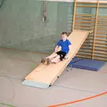 Sport-Thieme-plattformen för sluttande ytor är en metallkonstruktion med vilken sluttande ytor kan fästas på ribbstolar. Säker och enkel upphängning är möjlig tack vare prefabricerade, stabila fästen. Plattan fungerar som startyta. Den är gjord av björkplywood och imponerar med sin stabilitet och robusthet. Tack vare sin bredd erbjuder startområdet barn optimala förutsättningar för en säker och orädd start. Leverans utan lutning.