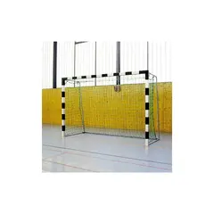 Det stabila Sport-Thieme inomhushandbollsmålet 3x2 m, stående i markhylsor med vikbara nätbågar. Stolparna, som kan skruvas 20 cm under tvärbalken, säkerställer enkel transport och montering. Det extremt robusta aluminiummålet imponerar också med sina rundade hörn, som förhindrar skador på spelarna. Röret och stolplocken hindrar aluminiumdelarna från att vila på hallgolvet och förhindrar därmed skador. Målkonstruktionen på 3x2 m erbjuder också särskilt starka nätbågar av galvaniserade stålrör.