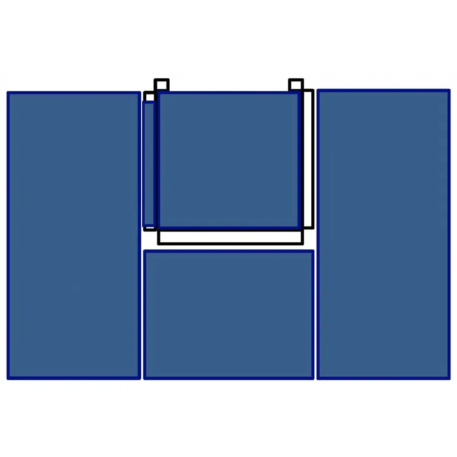 Sport-Thieme fallskyddsmatta set för "klätterhuset" gymnastikvägg består av 5 mattor. De kan anslutas snabbt och enkelt med hjälp av kardborre- och kardborresystemet. Mattorna har en kärna av RG 80 kompositskum och är täckta med ett blått Polygrip-överdrag. Mattorna fungerar också mycket bra på golvet i den ordinarie idrottsundervisningen .