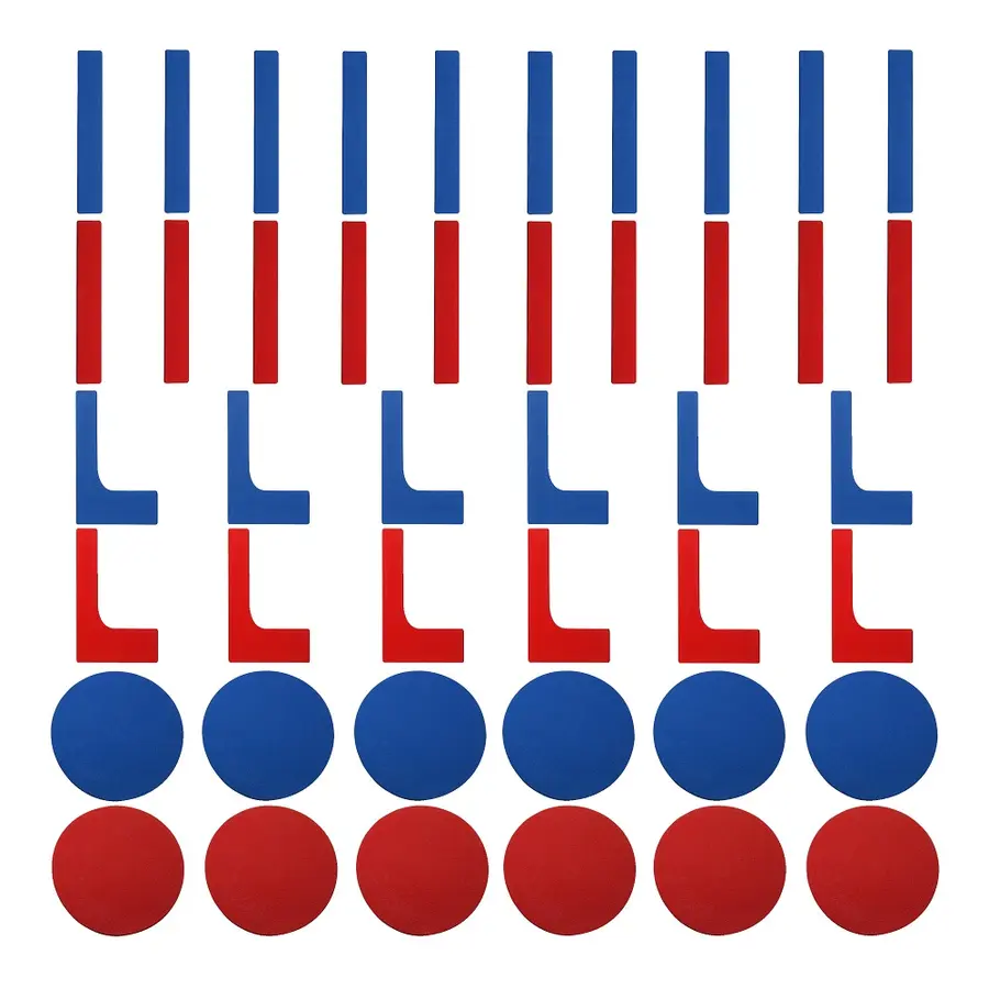 Markeringsset för att lägga upp banor och markeringar. Lämpligt för skolor, förskolor, och föreningar. Bra kvalitet. Halkfritt material. Lämnar inga märken på golvet