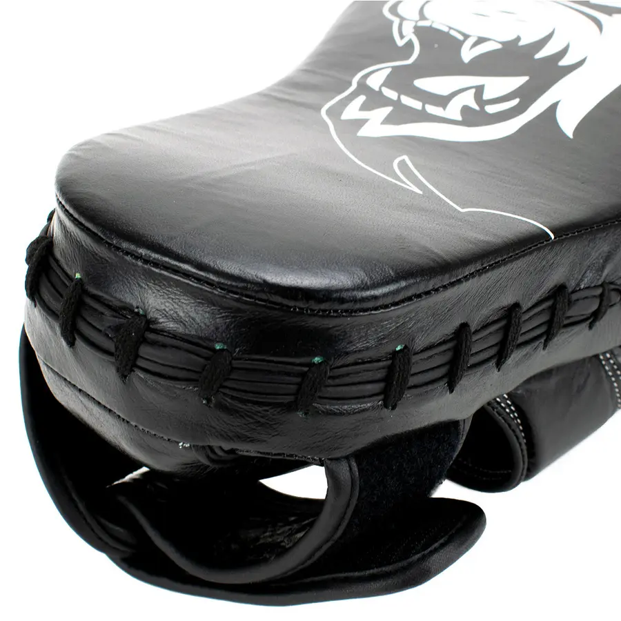Super Pro Loong Curved Punch Pads är de perfekta dynorna med en lång och böjd form. Kuddarna är gjorda av mycket starkt och slitstarkt läder. Tvålagers stoppning absorberar slag och sparkar maximalt. Med dessa pads kan du träna slag och höga sparkar, eftersom de är längre än vanliga boxningspads. Den fodrade innerhandsken innehåller en gripboll för optimalt grepp. Kardborrebandet bidrar också till ett tätt grepp. Handledsområdet får extra stöd och kuddarna är väldigt lätta vilket gör produkten lätt att använda och på grund av vikten är det lätt att hålla armarna i rätt position över tid. Kuddarna har en böjd form som gör det lättare att ta emot slag och sparkar. Lejonlogotypen är placerad i mitten av kuddarna för enkel fokus.