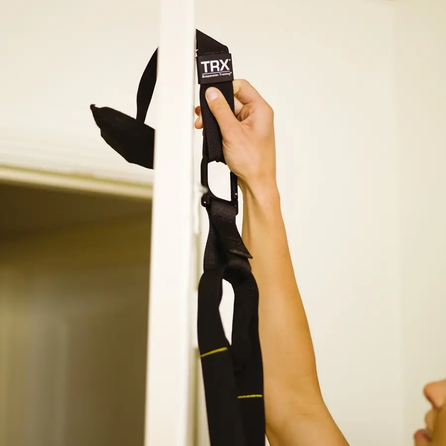 Med TRX® dörrankare kan du göra vilket rum som helst till en träningsplats. Träna med sele när du vill och var du vill. Fäst helt enkelt dörrankaret mellan dörren och karmen, så kan träningen börja. Dörrankaret är tillverkat av svart nylon med en skumplatta i änden täckt med filt, så det lämnar inga repor eller märken på dörren. En liten enhet, men ändå så användbar. Levereras med en liten Workout In Progress-skylt för att förhindra att någon öppnar dörren medan du tränar.